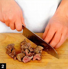 1 стакан бульона и доведите до кипения. Добавьте печенку и уменьшите огонь до минимального. Варите печенку 7 минут, она должна оставаться внутри слегка розовой. Снимите сотейник с огня и нарежьте печенку небольшими кусочками.