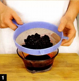 1 . Смешайте в миске чернику, 1/3 стакана сахара и лимонный сок и оставьте на 1 час. Переложите в сотейник и варите на среднем огне, пока ягоды не дадут сок и не станут мягкими, 10-15 минут. Откиньте на мелкое сито, чтобы стек сок (сохраните его), остудите.