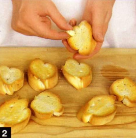 тосты рецепты +с фото   2 . Кусочки багета сбрызните оливковым маслом и положите на противень или на решетку, поставьте в духовку, разогретую до 180 °С. Запекайте до золотистого цвета. Готовые тосты натрите зубчиком чеснока.