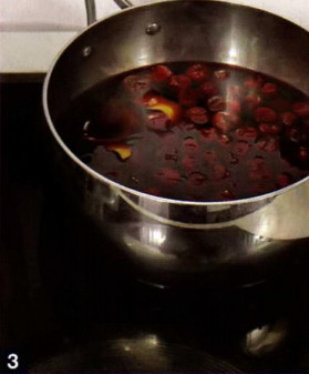 3 . Положите в кастрюлю вишню, снова доведите до кипения и варите 5 минут.